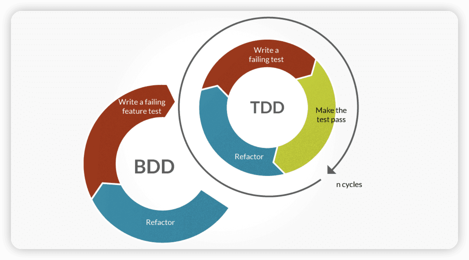 At the same time, thanks to the DSL language used in BDD (standard, normative, and highly readable), not only can developers efficiently discover problems using BDD, but it also facilitates the testing team to participate in writing.